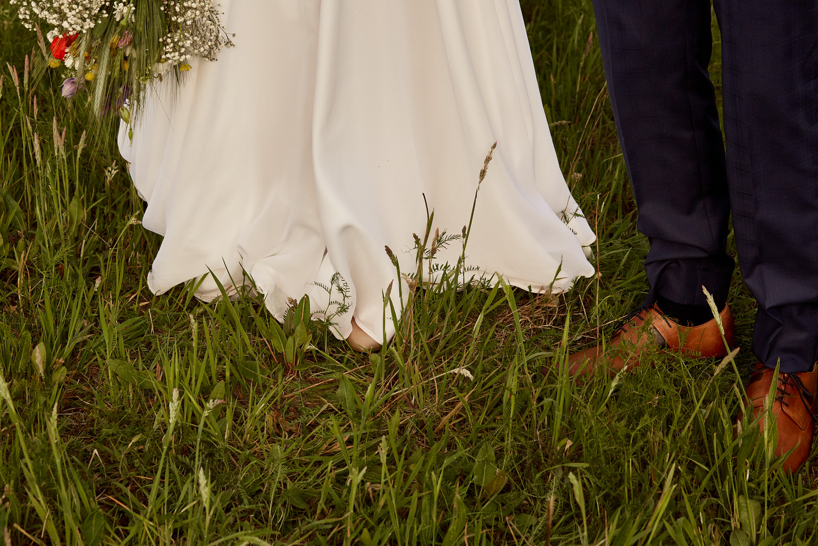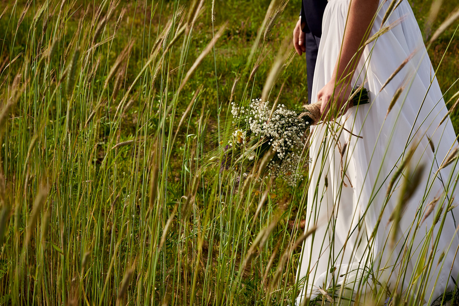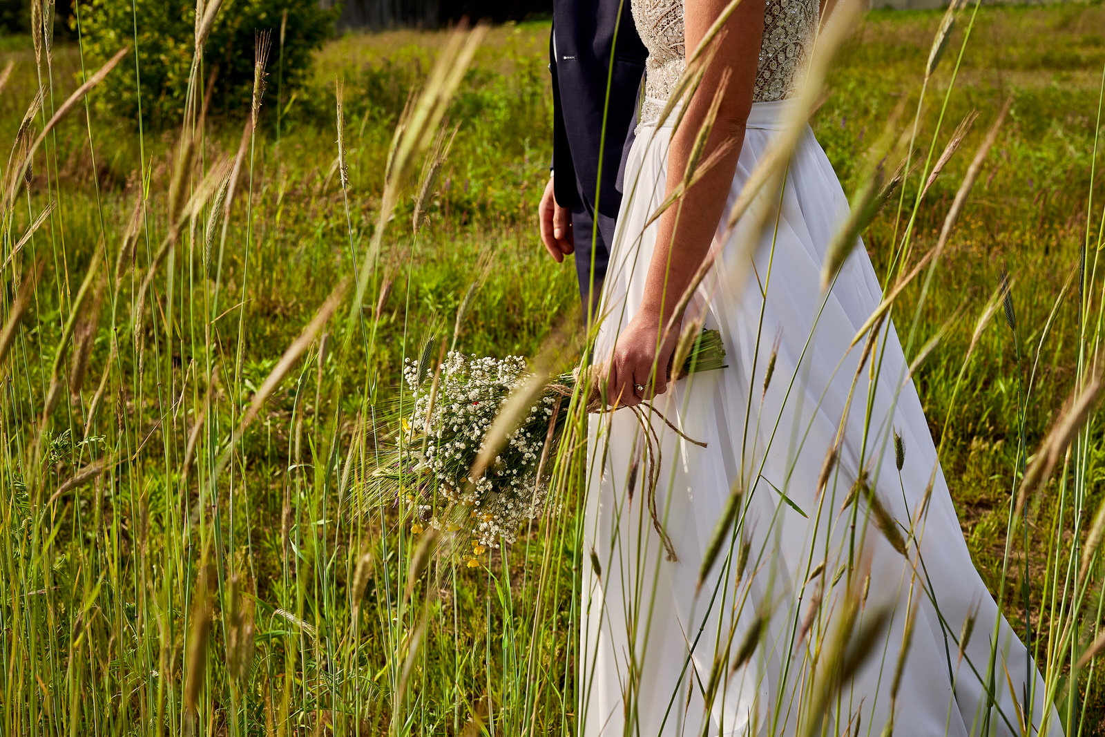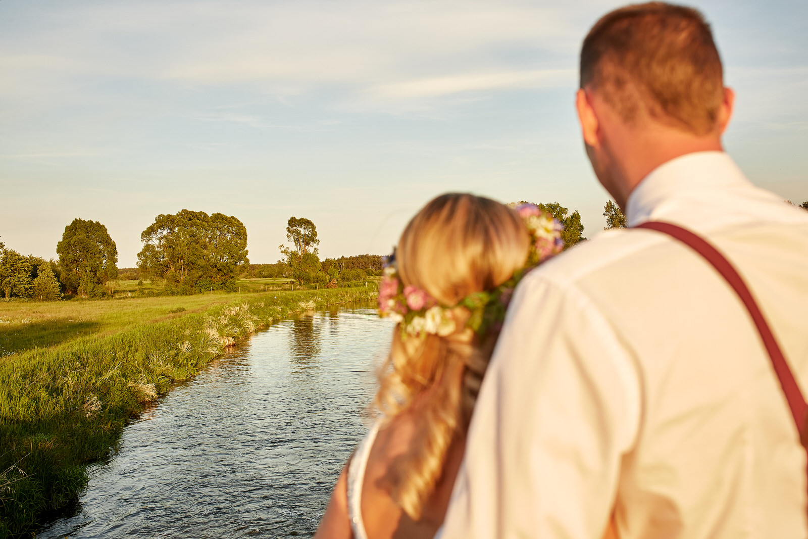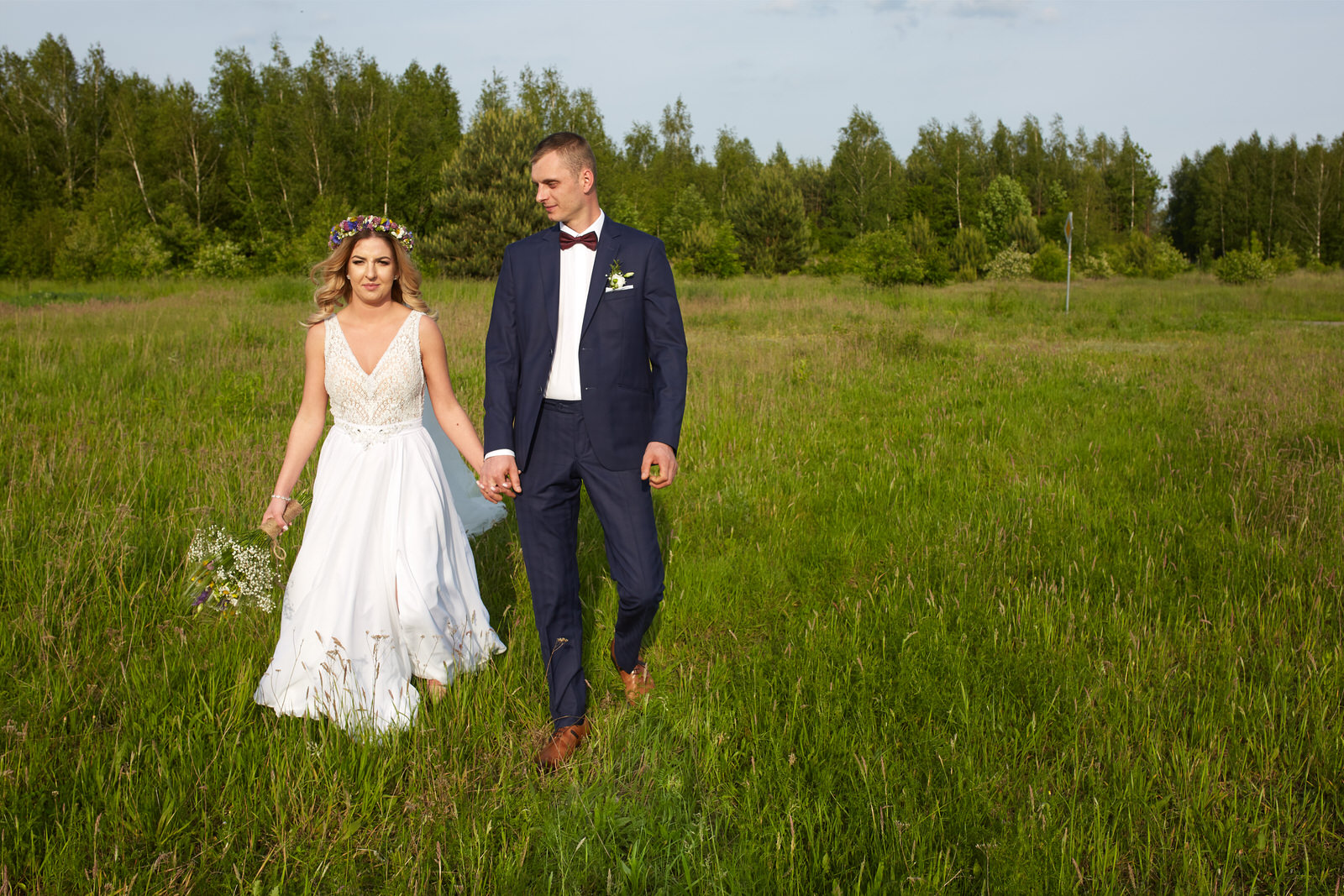Przenosimy się z uroczej salki Siedlisko w plener, kontynuując nawiązanie do rustykalnego stylu. Jesteśmy więc na wsi. Słońce znów uśmiechnęło się na widok świeżo upieczonych Małżonków, podgrzewając atmosferę między nimi jeszcze bardziej. Dobrze, że trawa nie była zbyt sucha, bo iskry przeskakujące między nimi mogłyby narobić niezłego zamieszania!