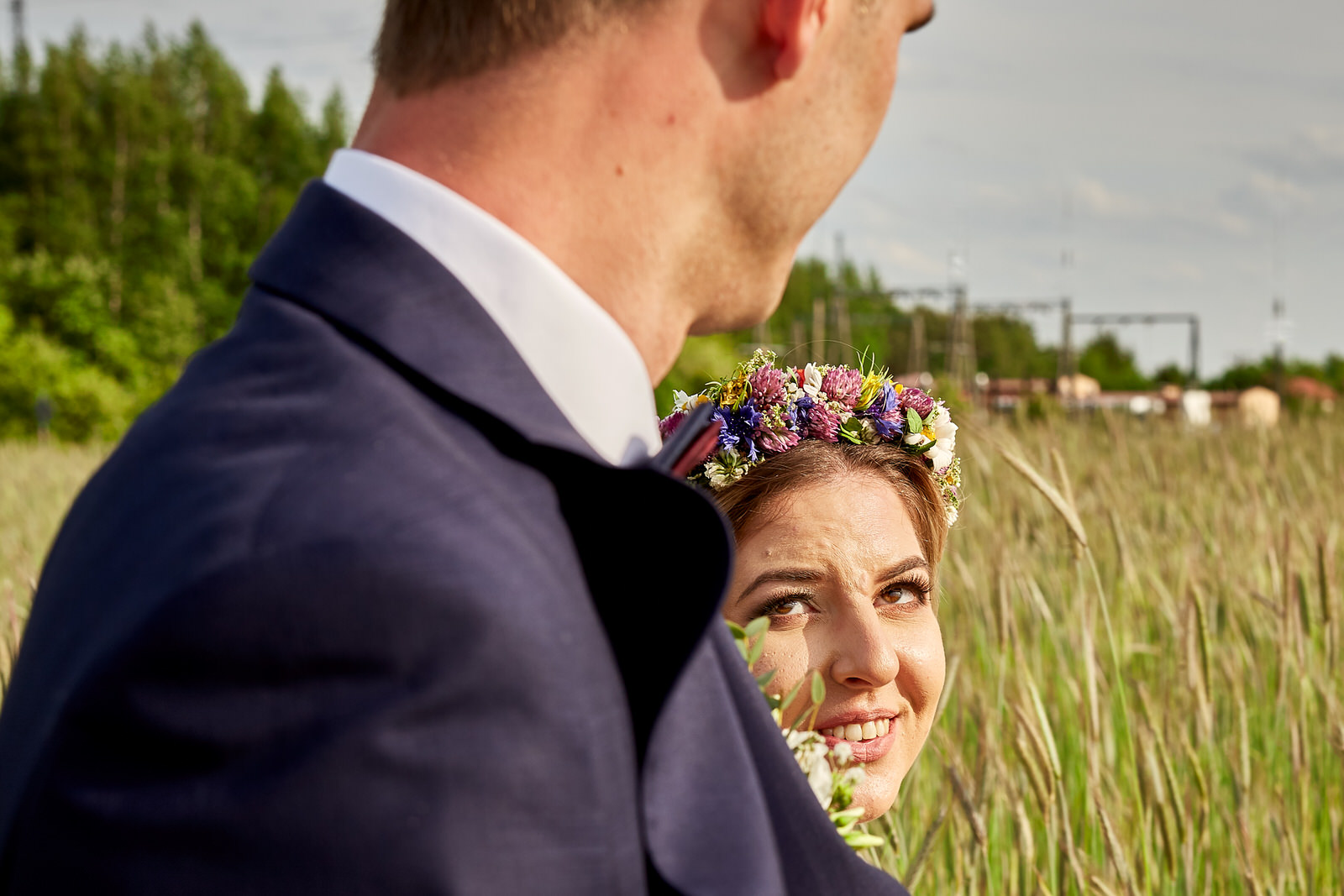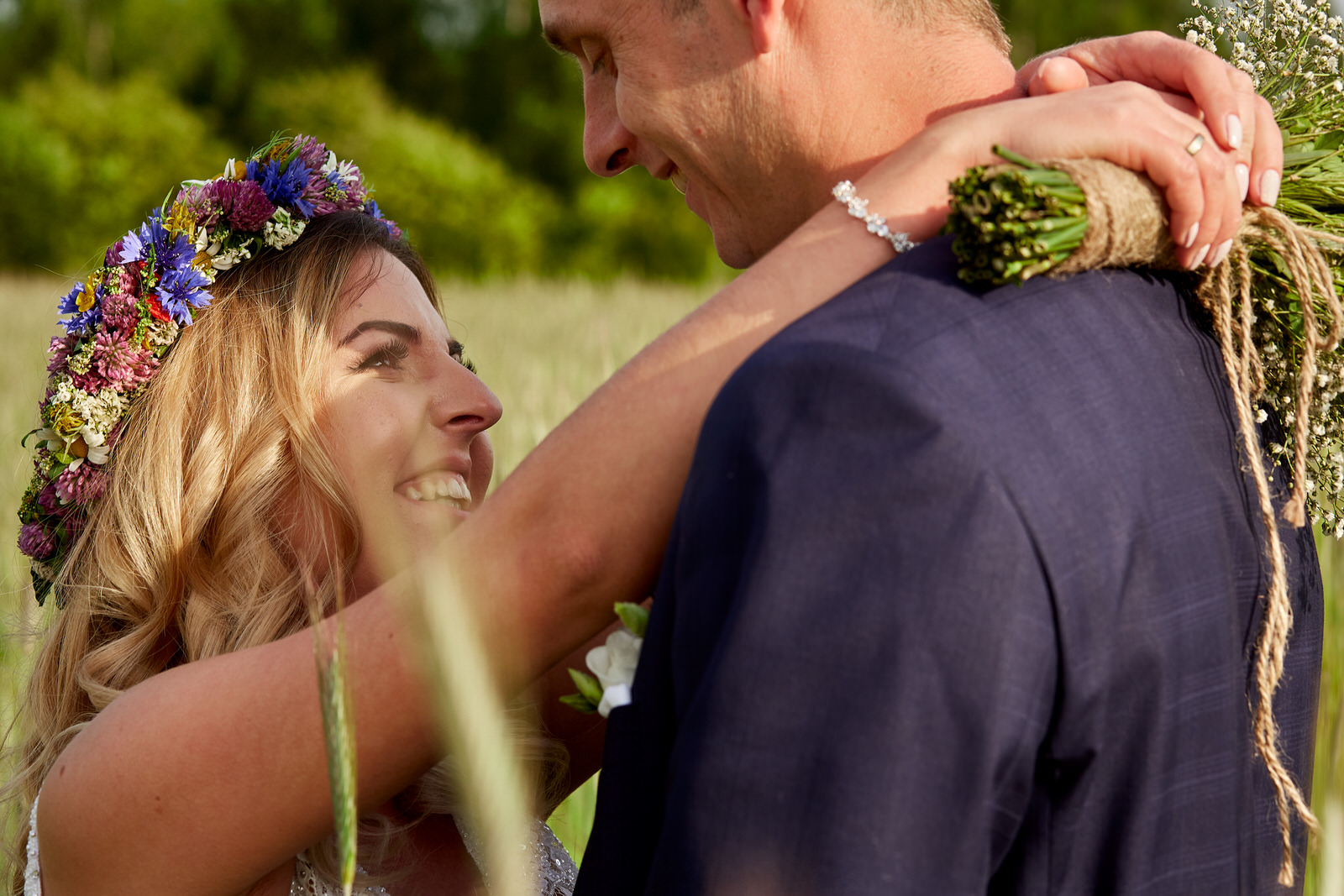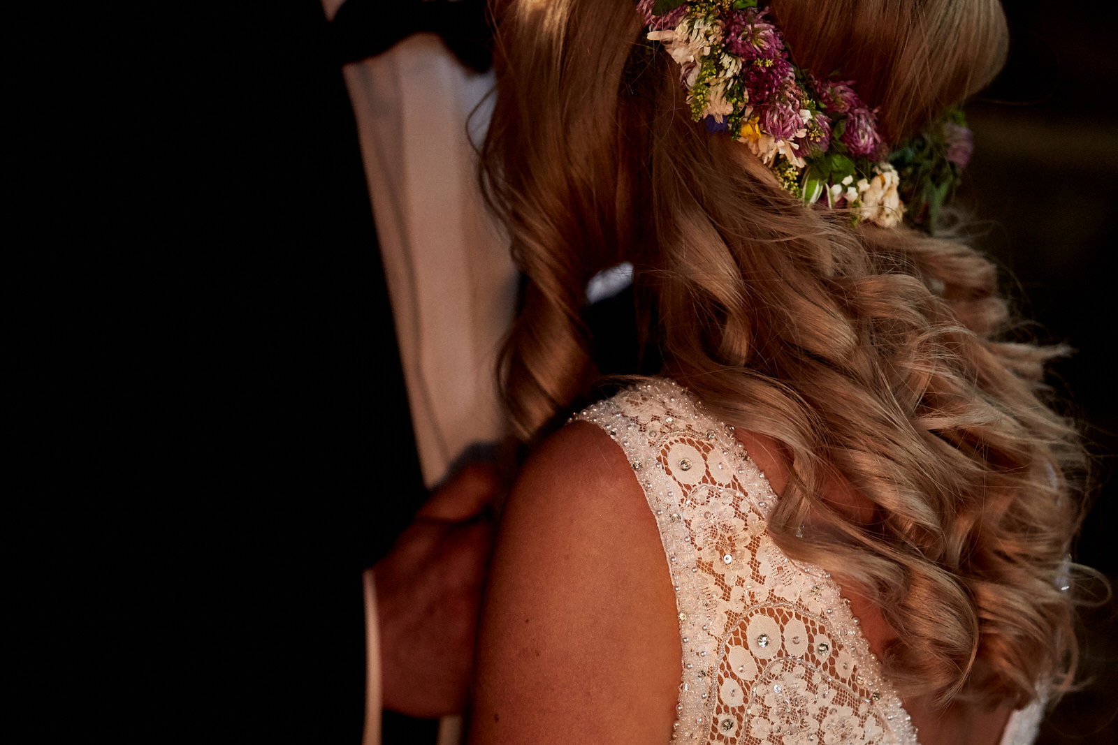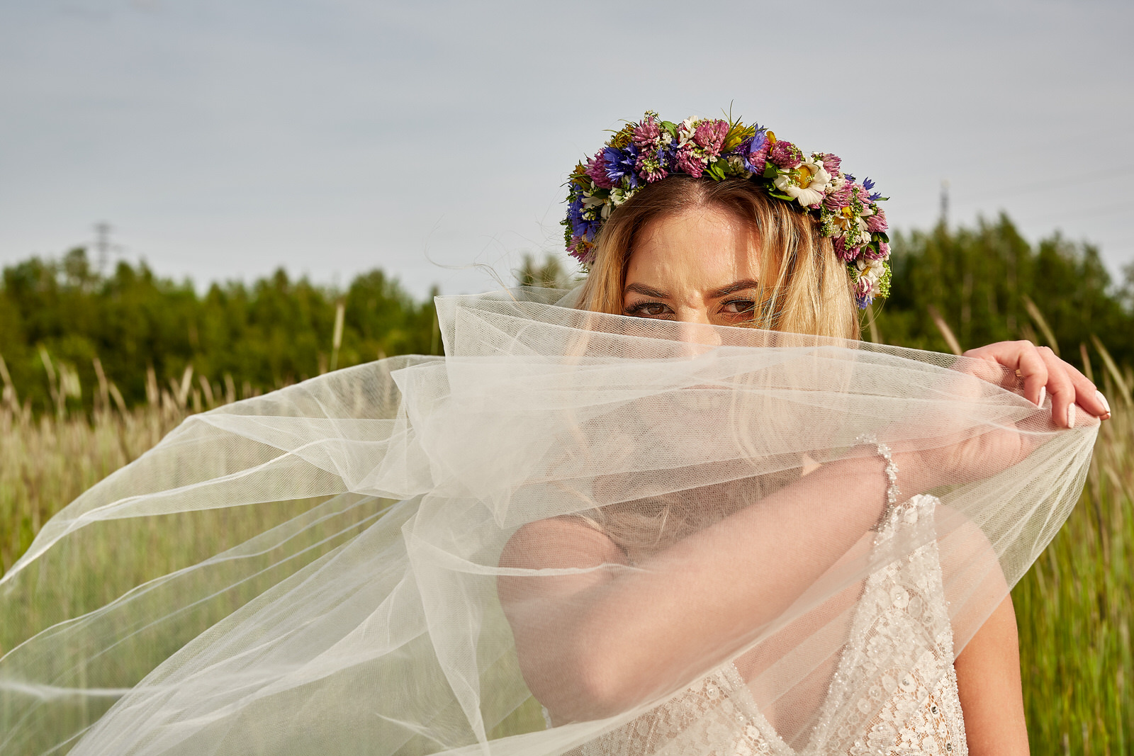 Jest dużo kwiatów, kolorowy wianek we włosach Żony, równie kolorowy bukiet w jej dłoniach. Perfekcyjny makijaż i manicure, starannie ułożona fryzura – ale wiemy już, że ta Para to perfekcjoniści. Efekt jest więc przyjemny dla oka, a przy tym bardzo naturalny.