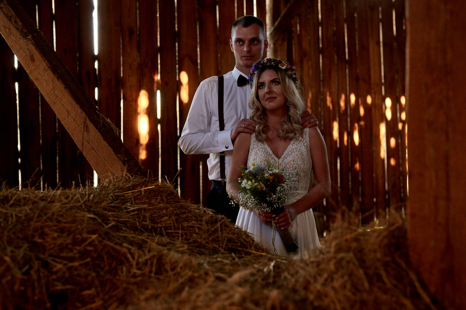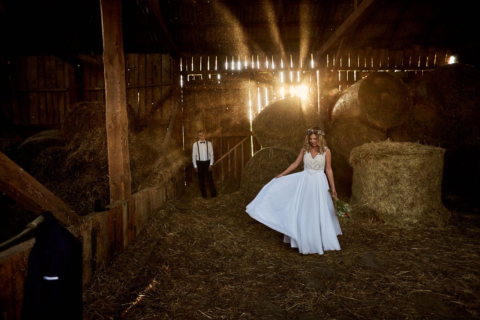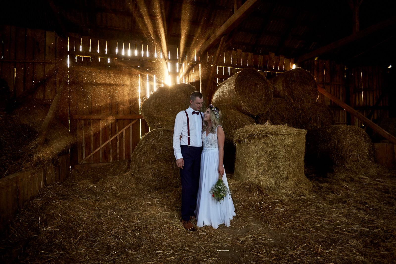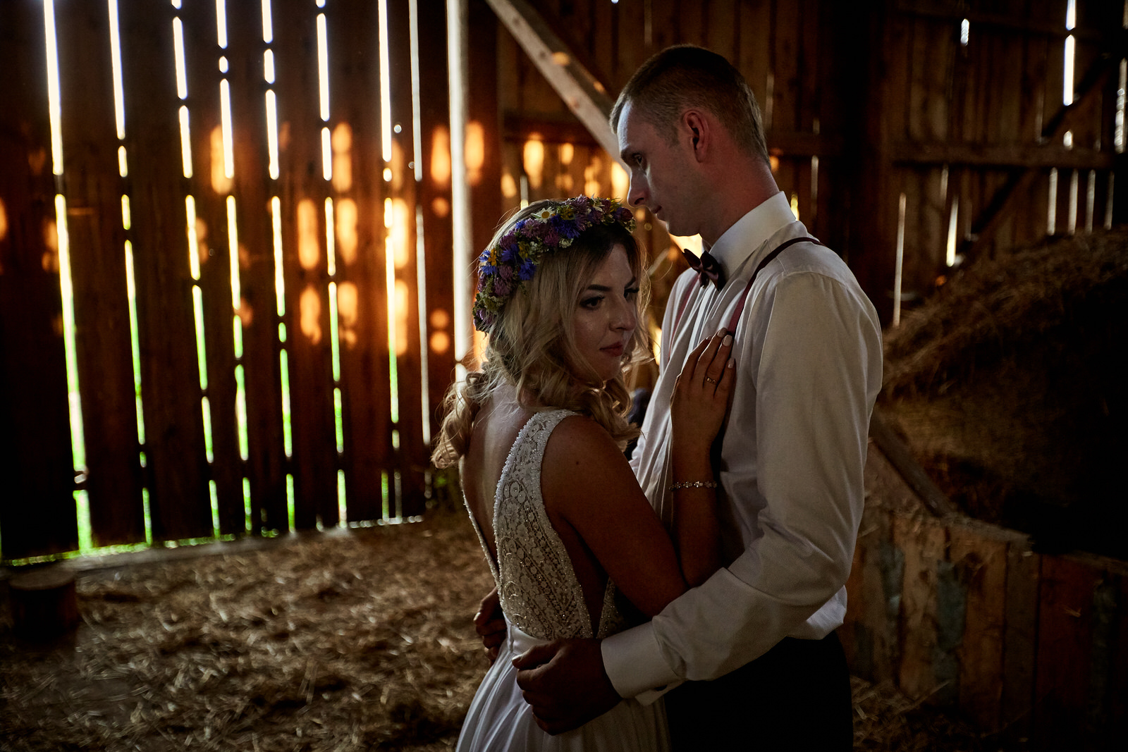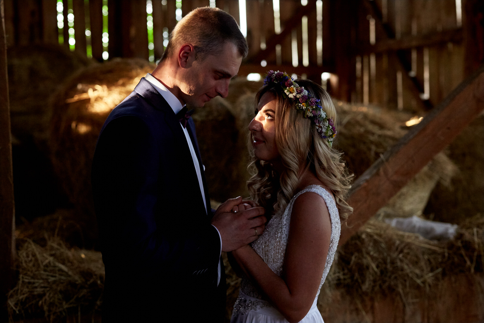 Całość idealnie dopełniła urocza, klimatyczna stodoła. Gra światła, elementów natury i gorących spojrzeń Małżonków – wszystko w idealnej symbiozie.