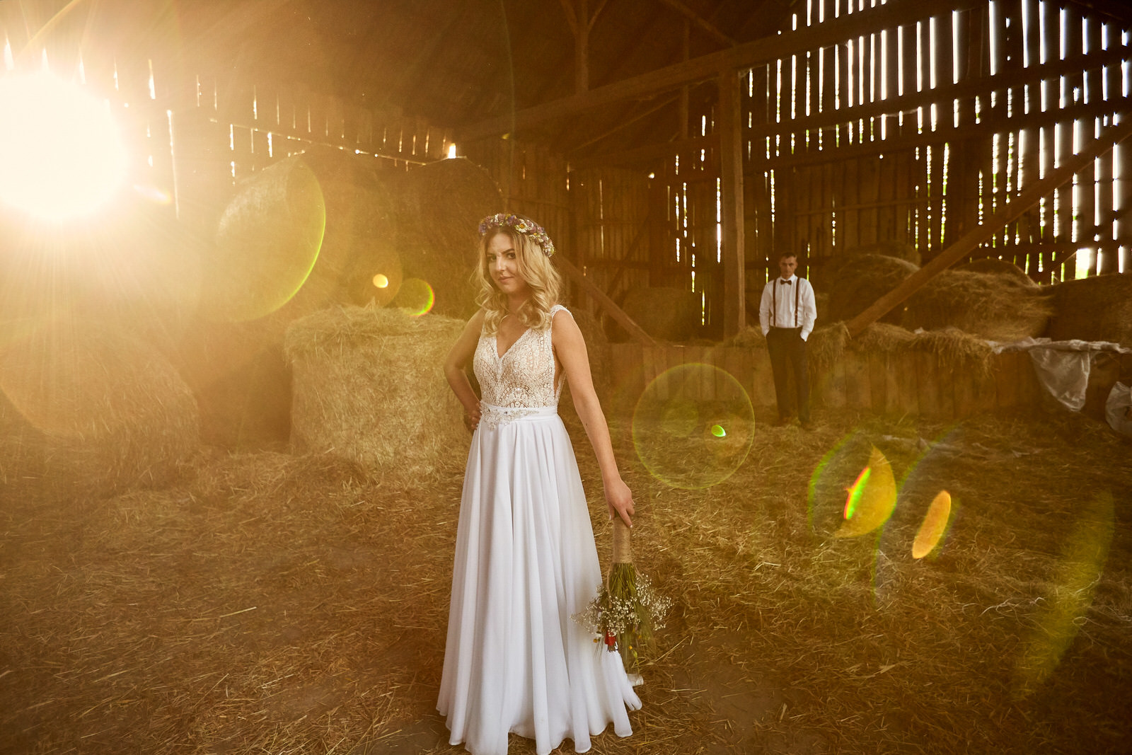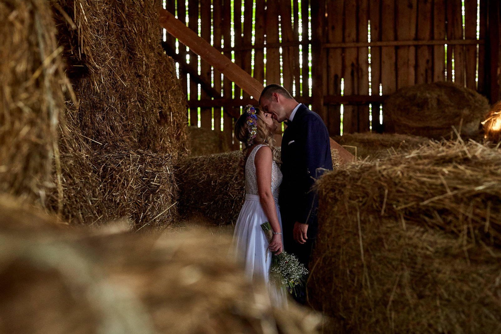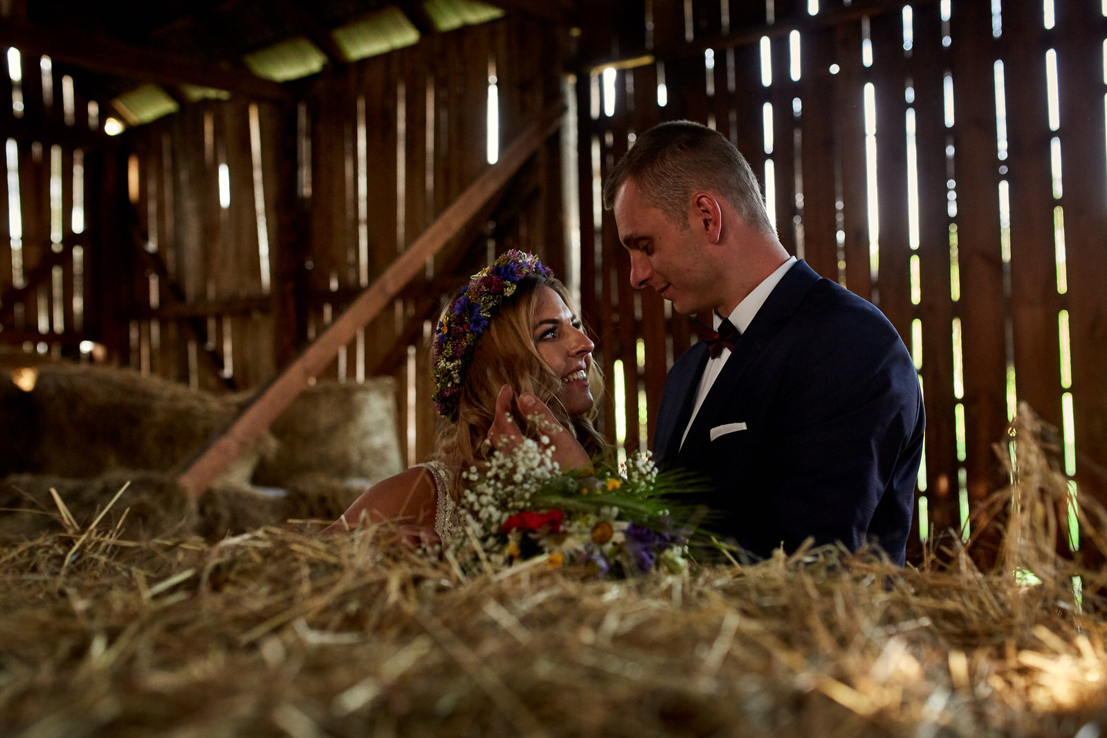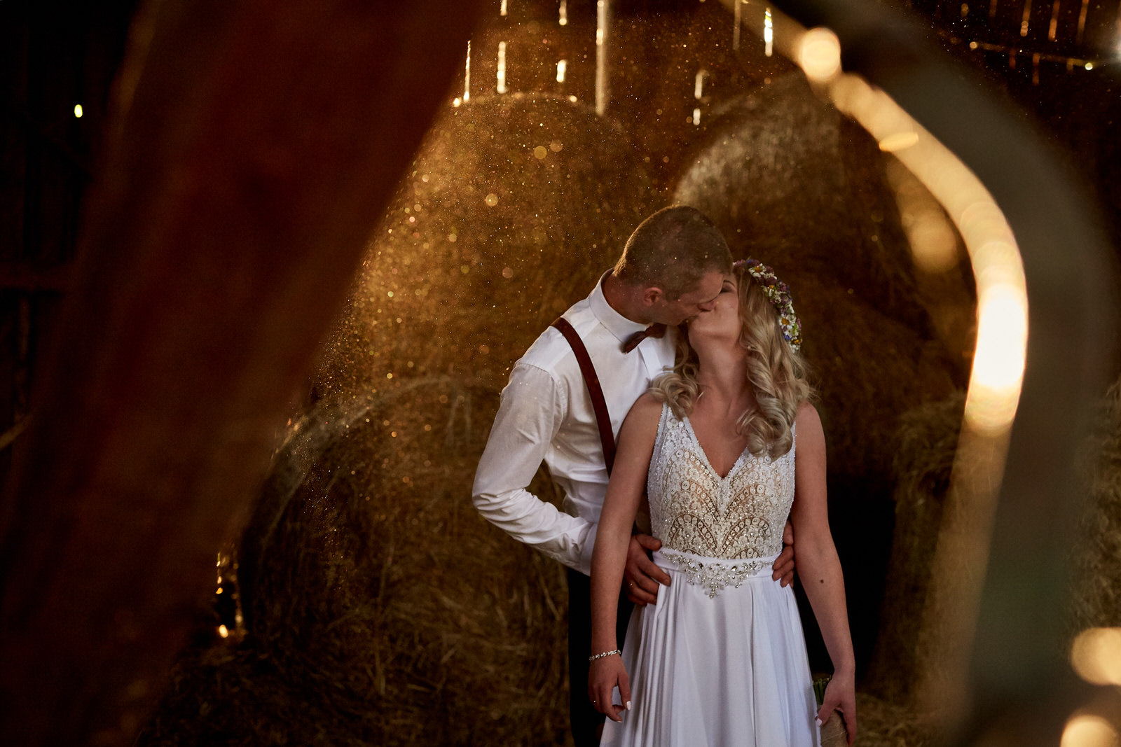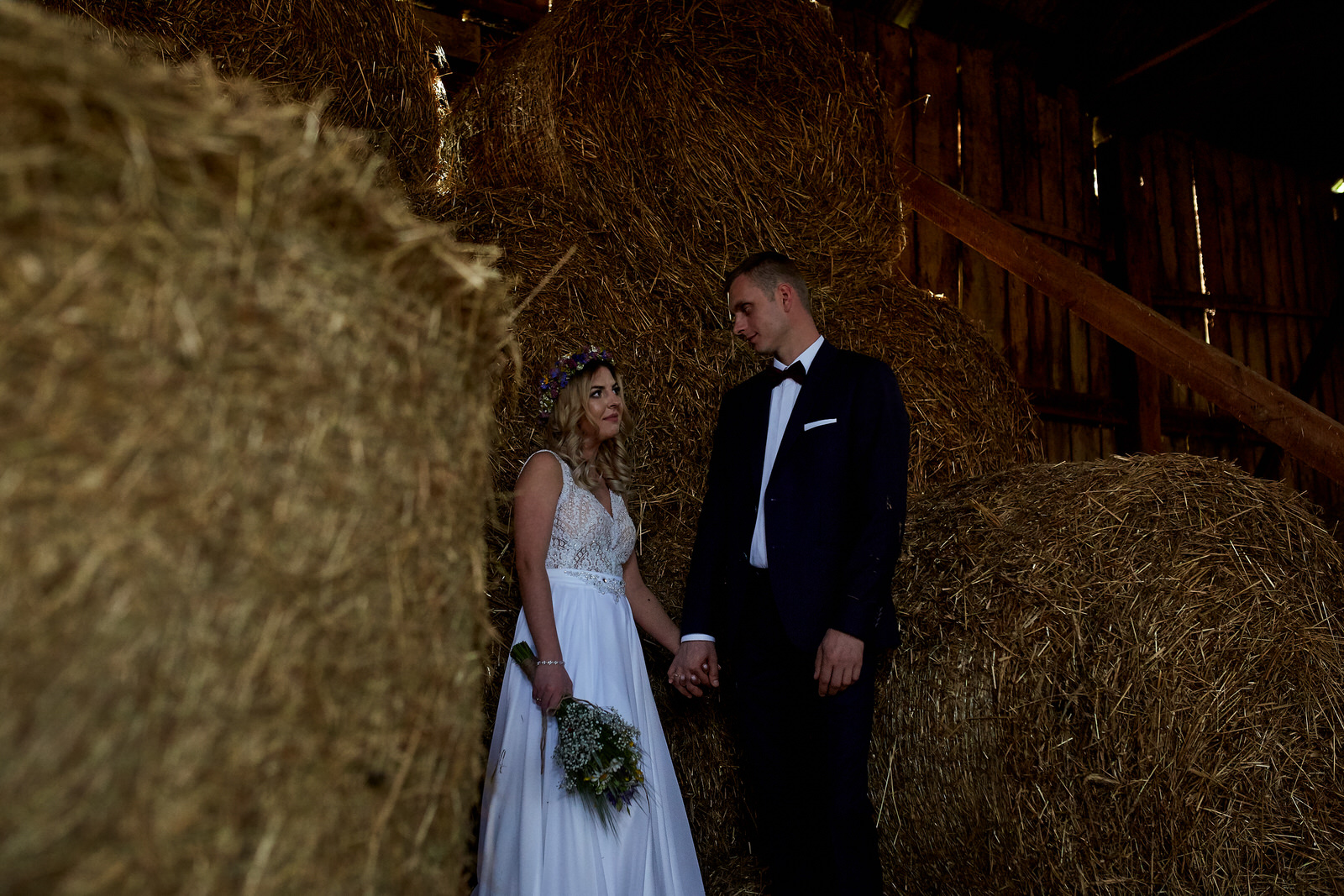 Całość idealnie dopełniła urocza, klimatyczna stodoła. Gra światła, elementów natury i gorących spojrzeń Małżonków – wszystko w idealnej symbiozie.
