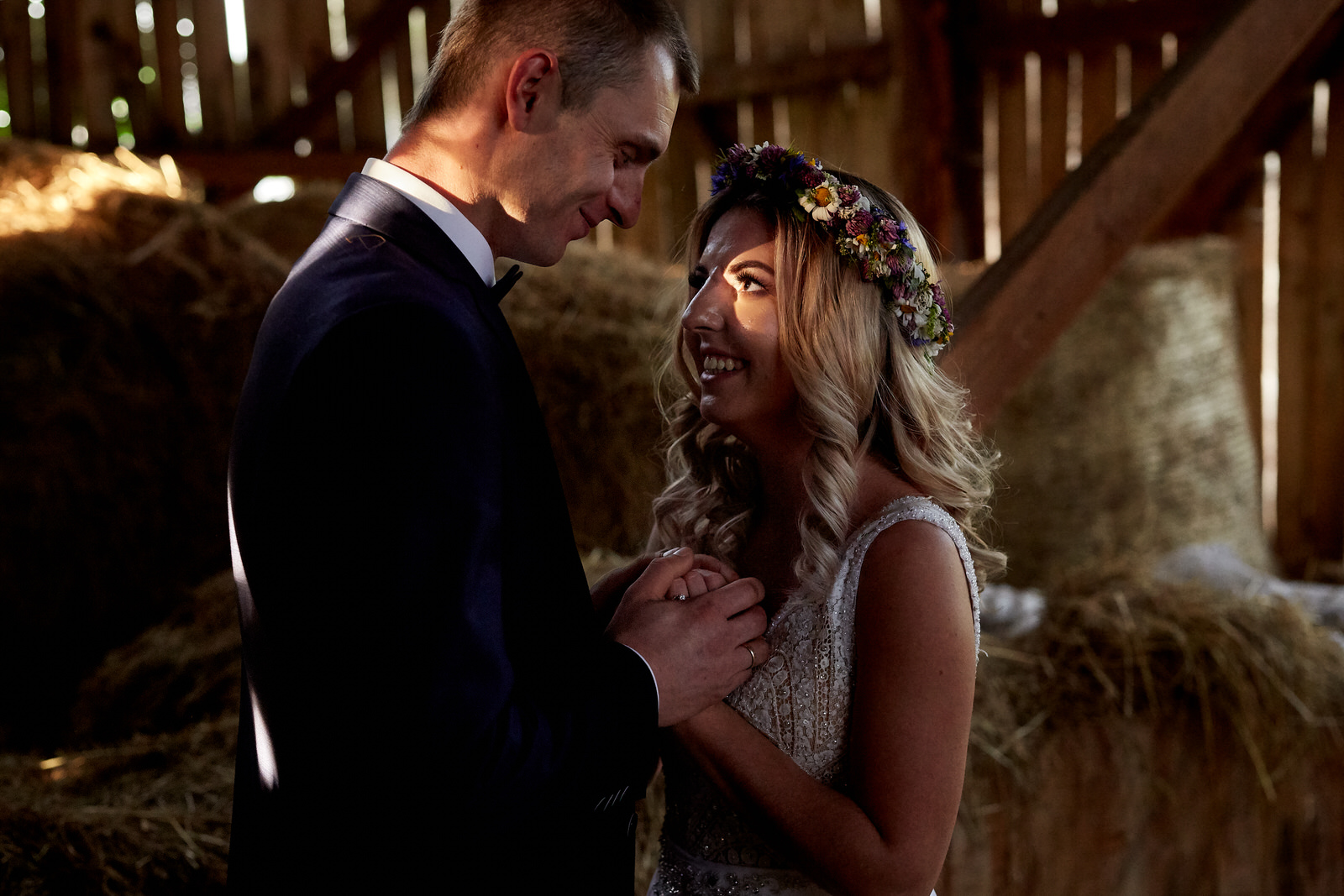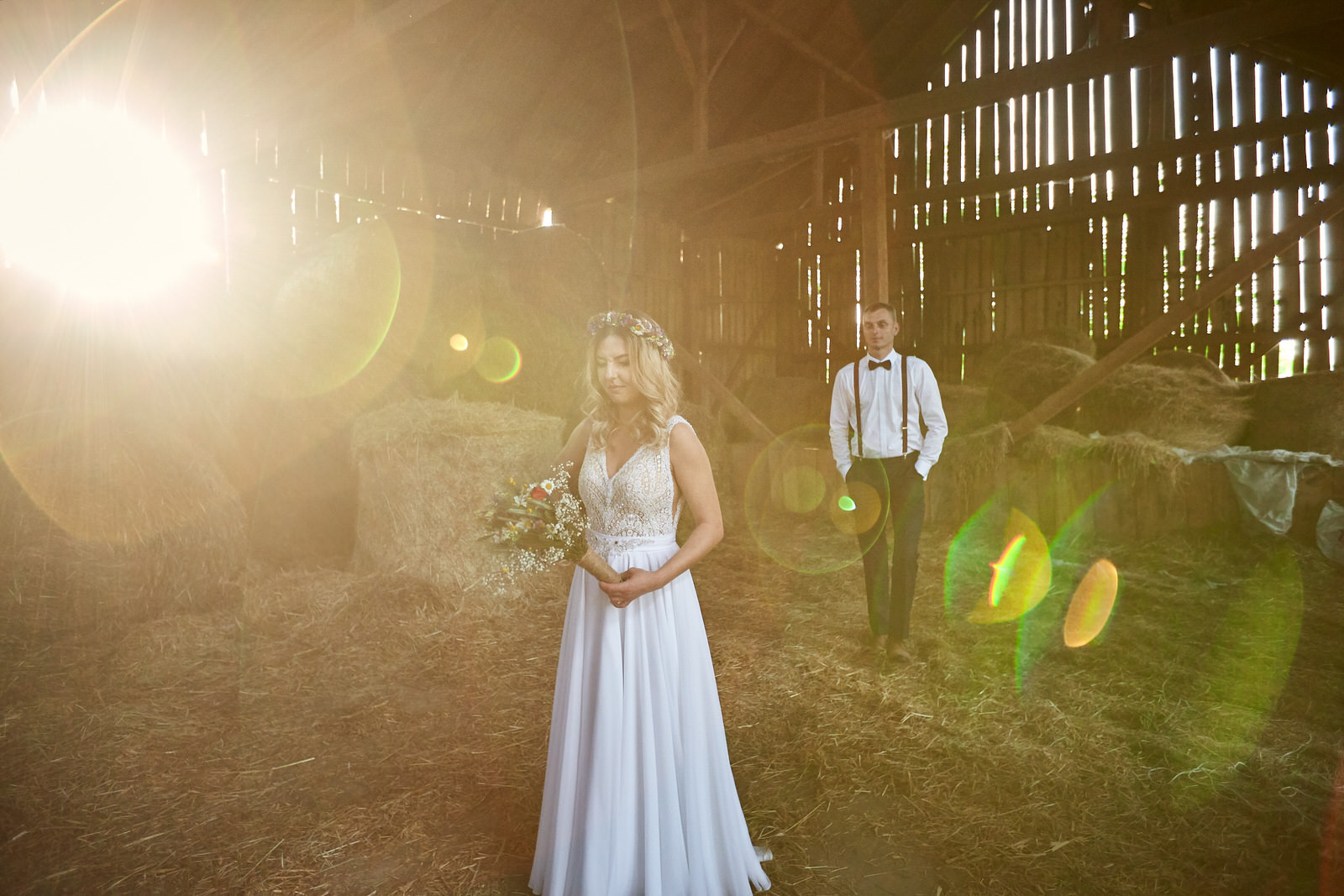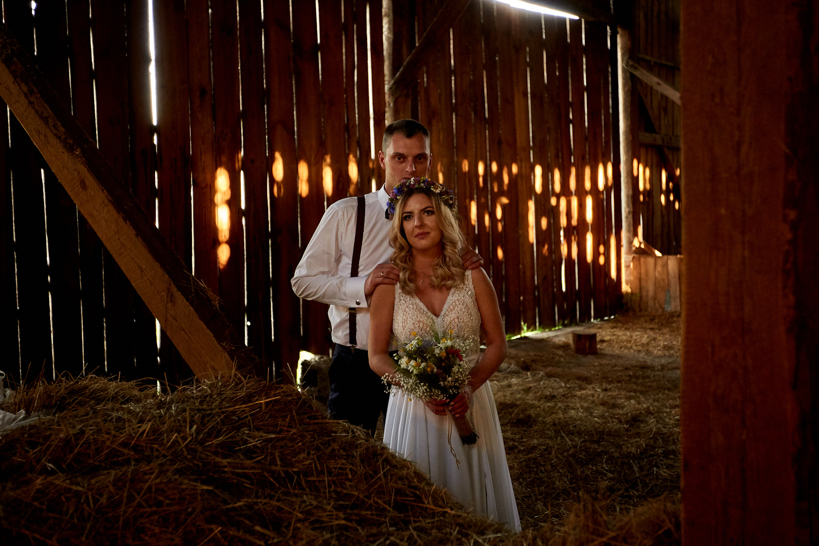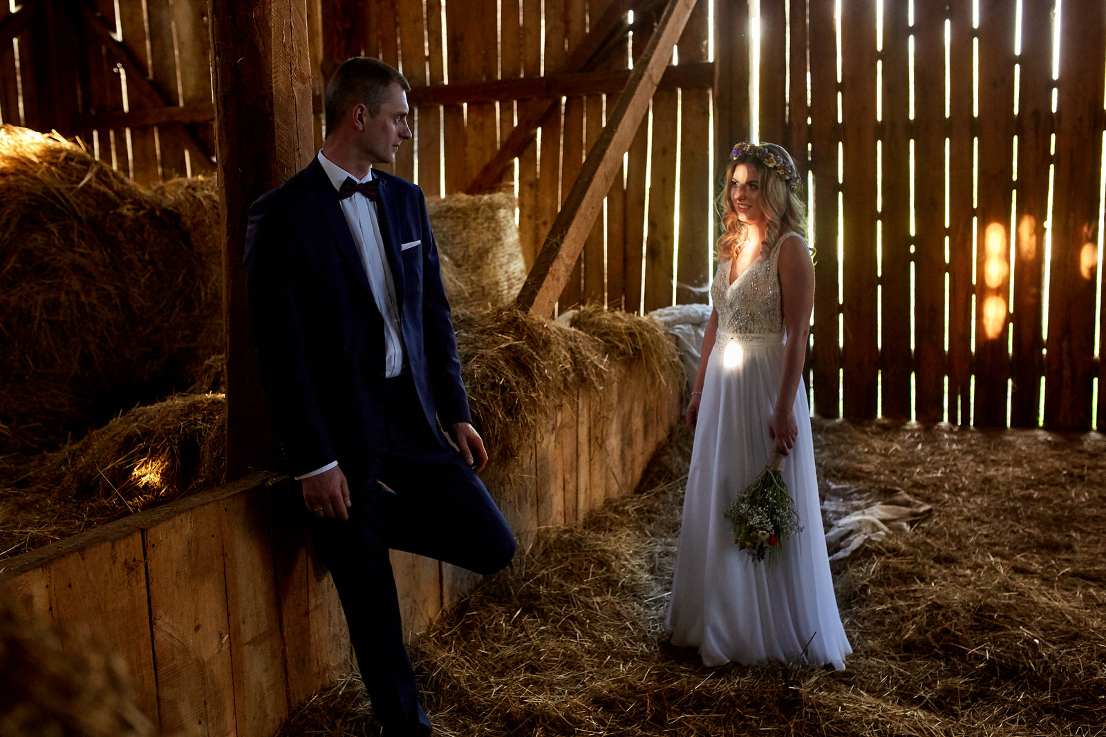 Całość idealnie dopełniła urocza, klimatyczna stodoła. Gra światła, elementów natury i gorących spojrzeń Małżonków – wszystko w idealnej symbiozie.