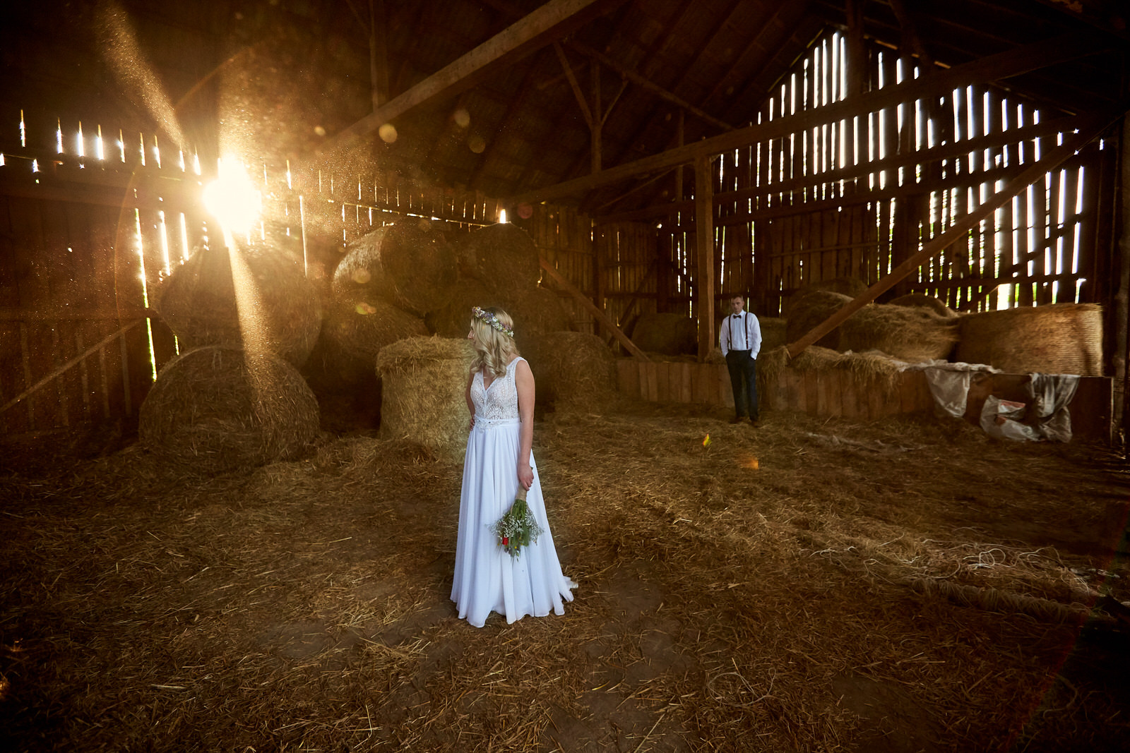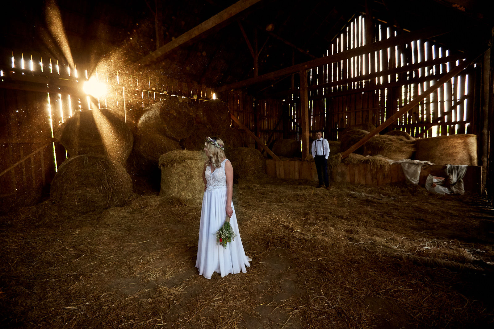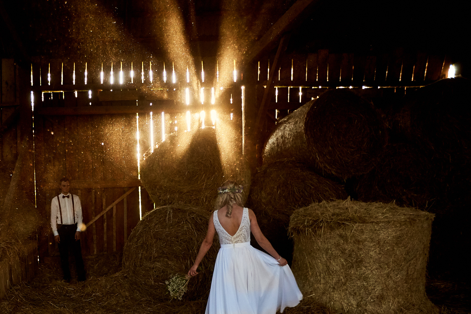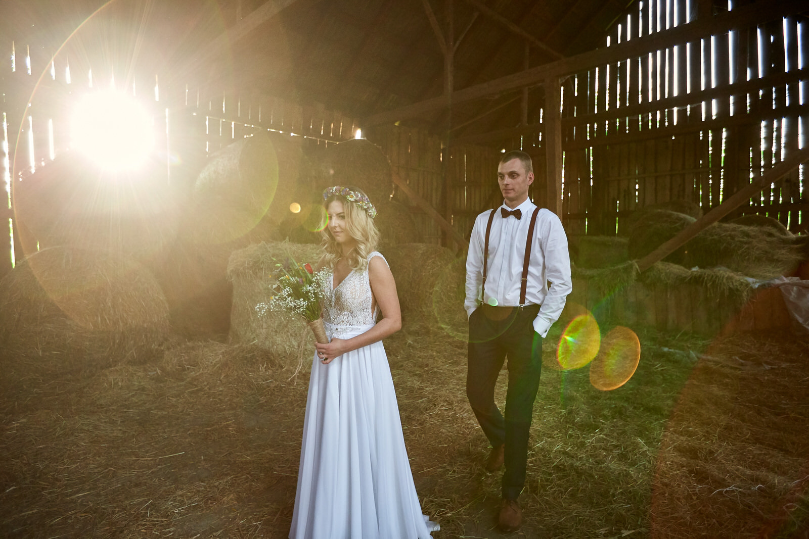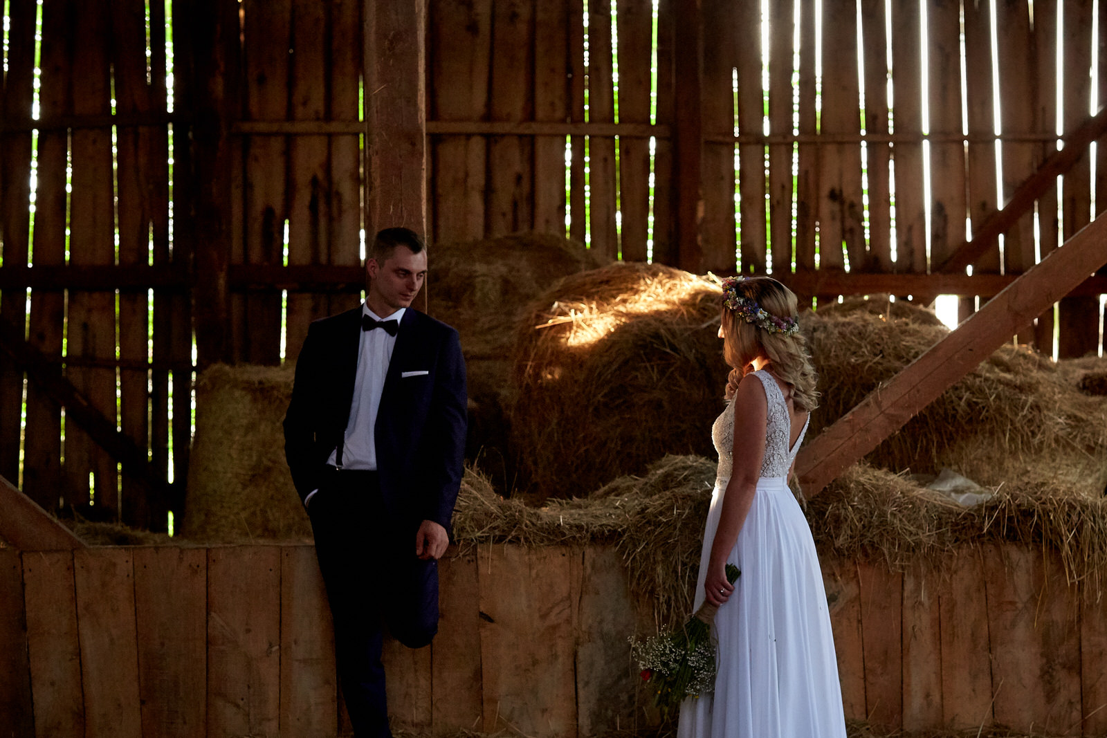 Całość idealnie dopełniła urocza, klimatyczna stodoła. Gra światła, elementów natury i gorących spojrzeń Małżonków – wszystko w idealnej symbiozie.