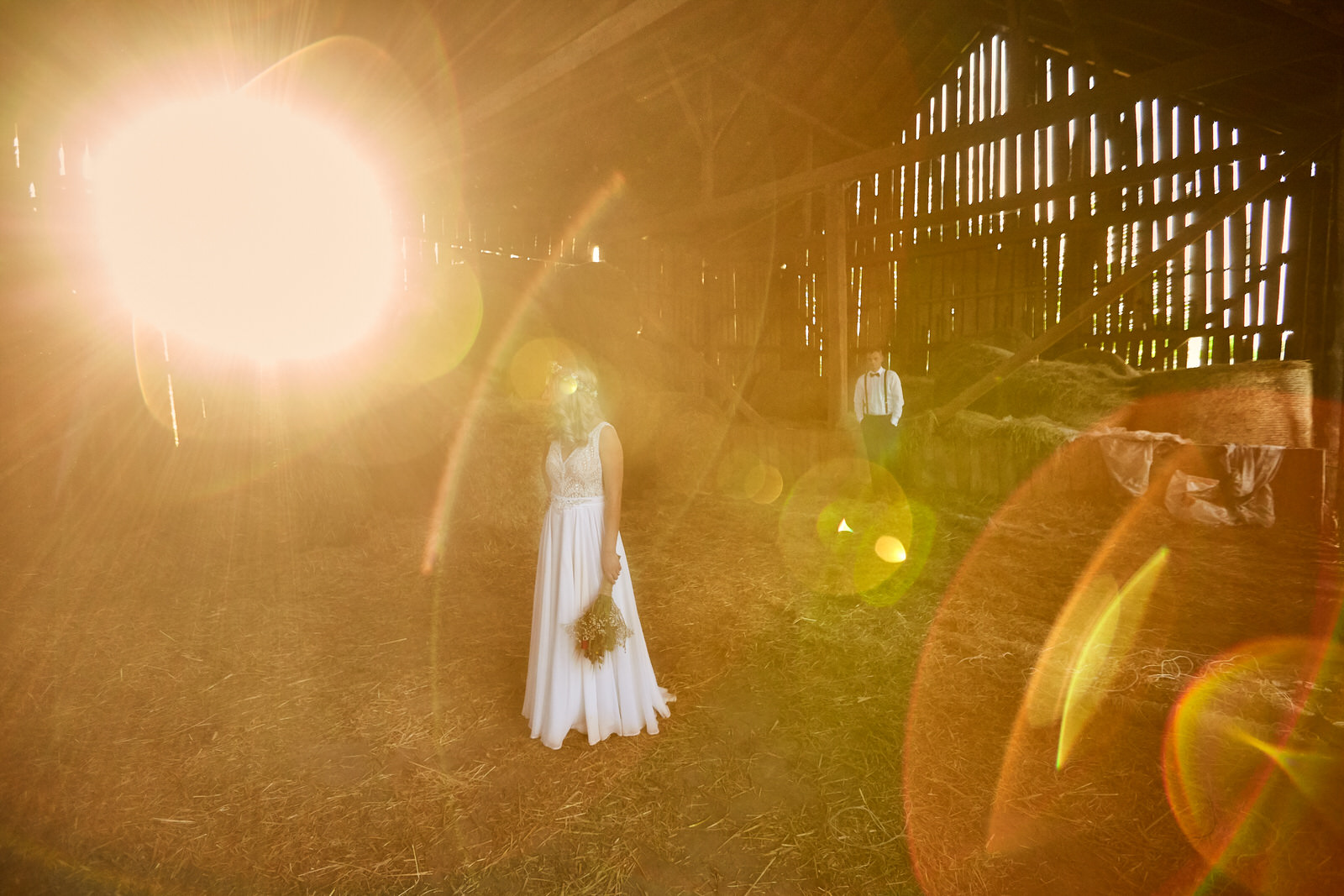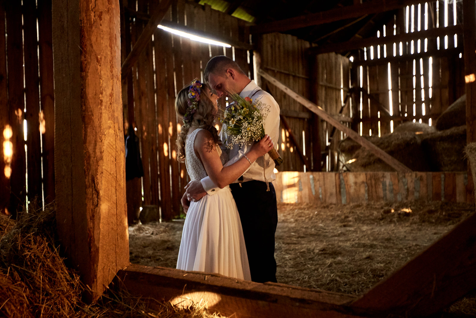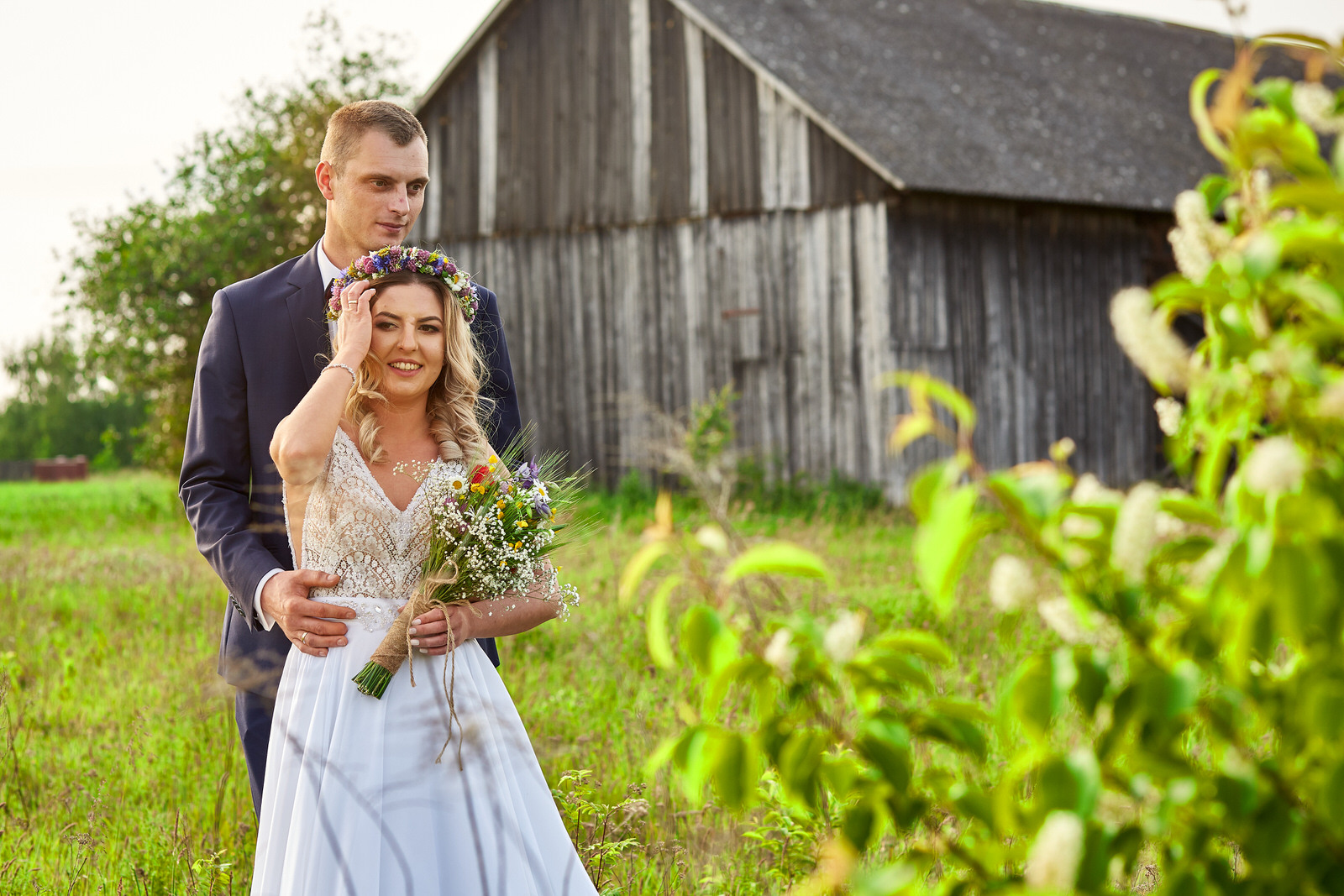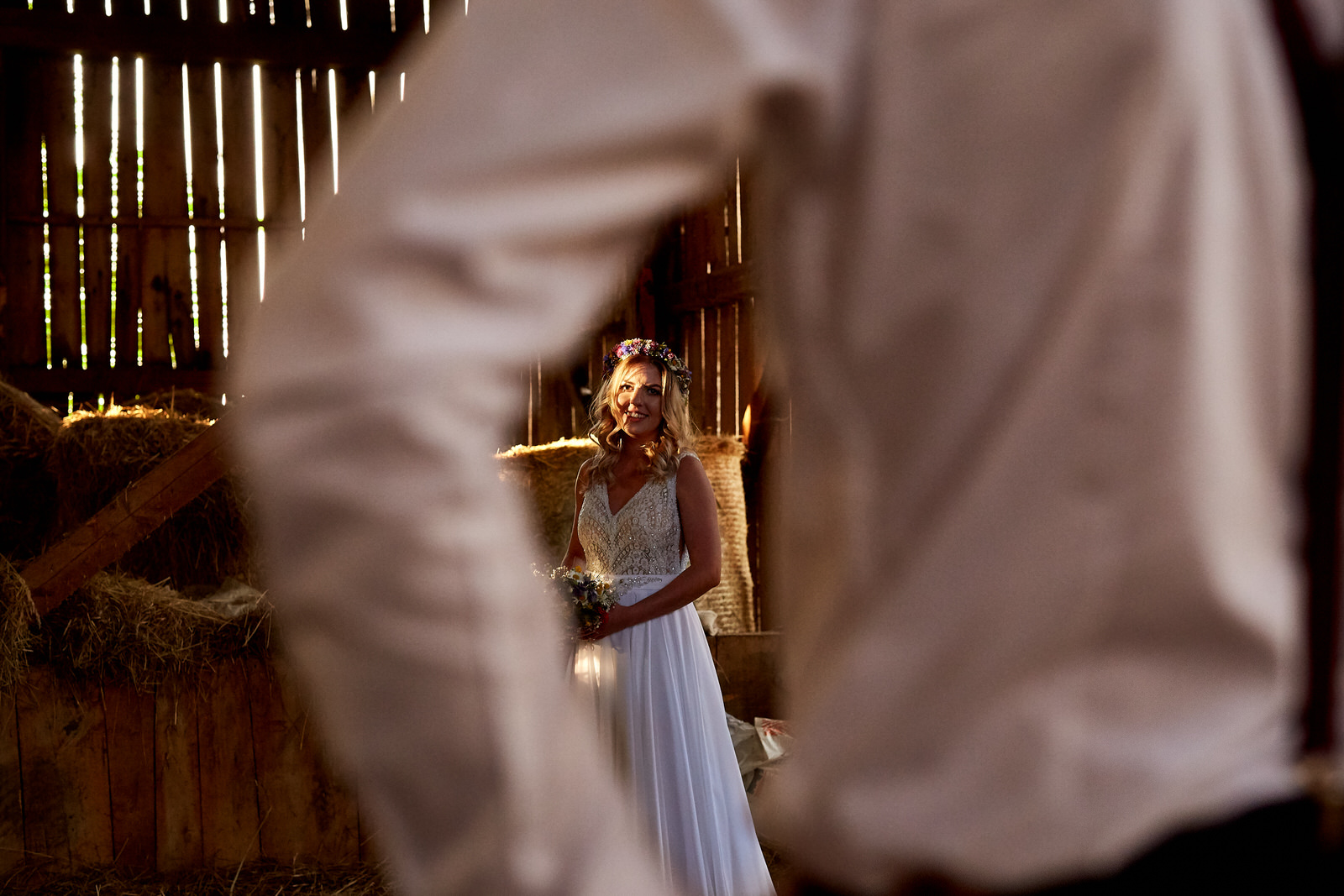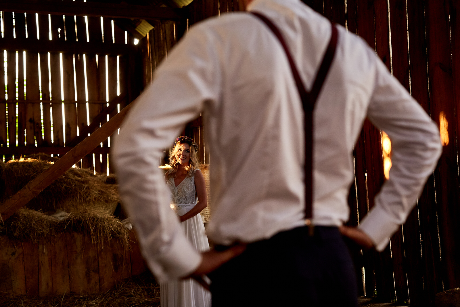 Całość idealnie dopełniła urocza, klimatyczna stodoła. Gra światła, elementów natury i gorących spojrzeń Małżonków – wszystko w idealnej symbiozie.